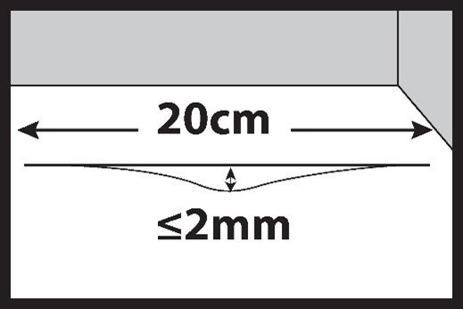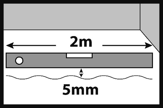 Denivelările maxime admise pot fi de până la 5 mm, măsurate pe o lungime de 2 m. Denivelări locale nu mai mari de 2 mm pe o lungime de 20 cm.