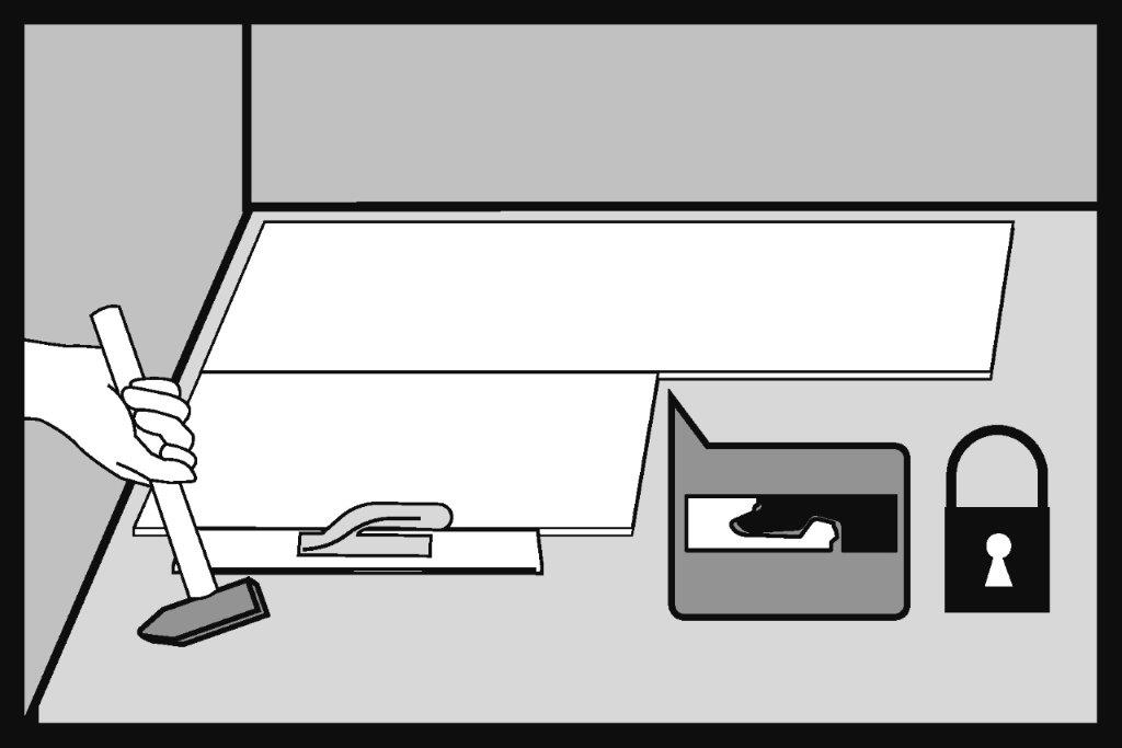 Loviți panoul cu ciocanul fără urme pe partea lungă. Atunci când instalați panouri, loviți întotdeauna încuietoarea pe partea lungă.
