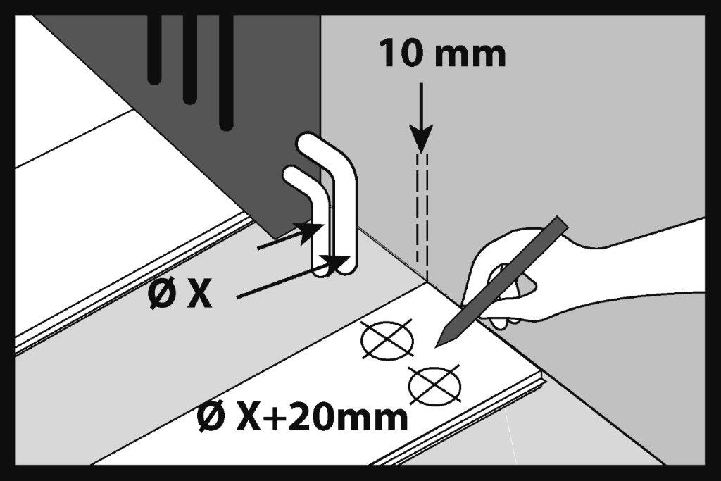 Lângă țevile caloriferului, desenați în panoul SPC orificii cu un diametru cu 20 mm mai mare.