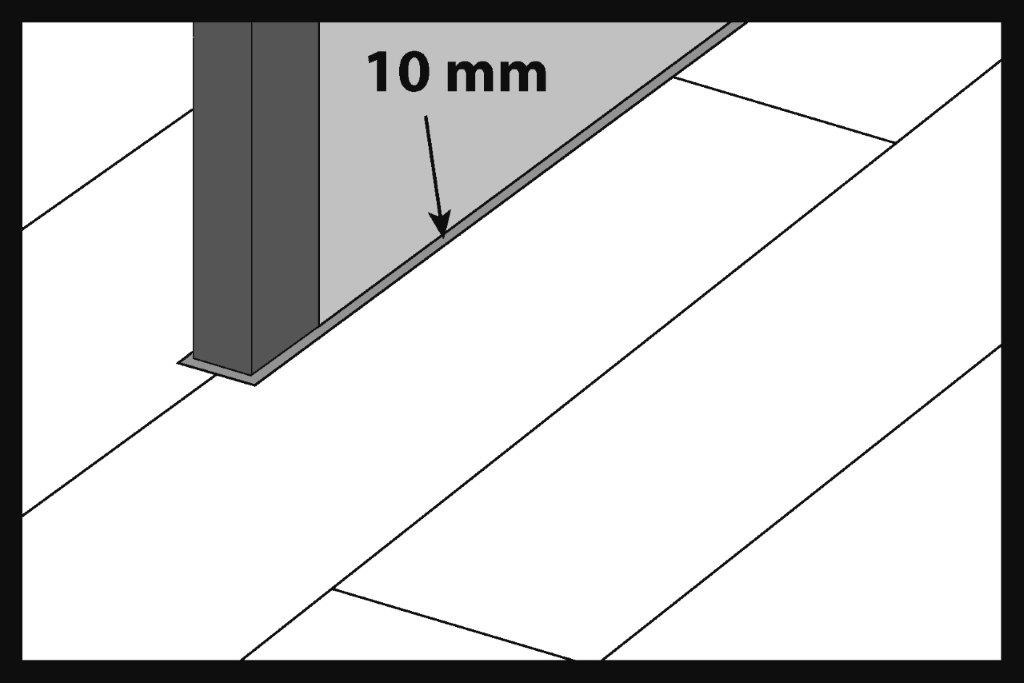 Spațiul de expansiune poate fi umplut cu o umplutură flexibilă). În cazul unui sistem de asamblare flotant, lăsăm întotdeauna un spațiu de dilatare circumferențial de 5 mm.