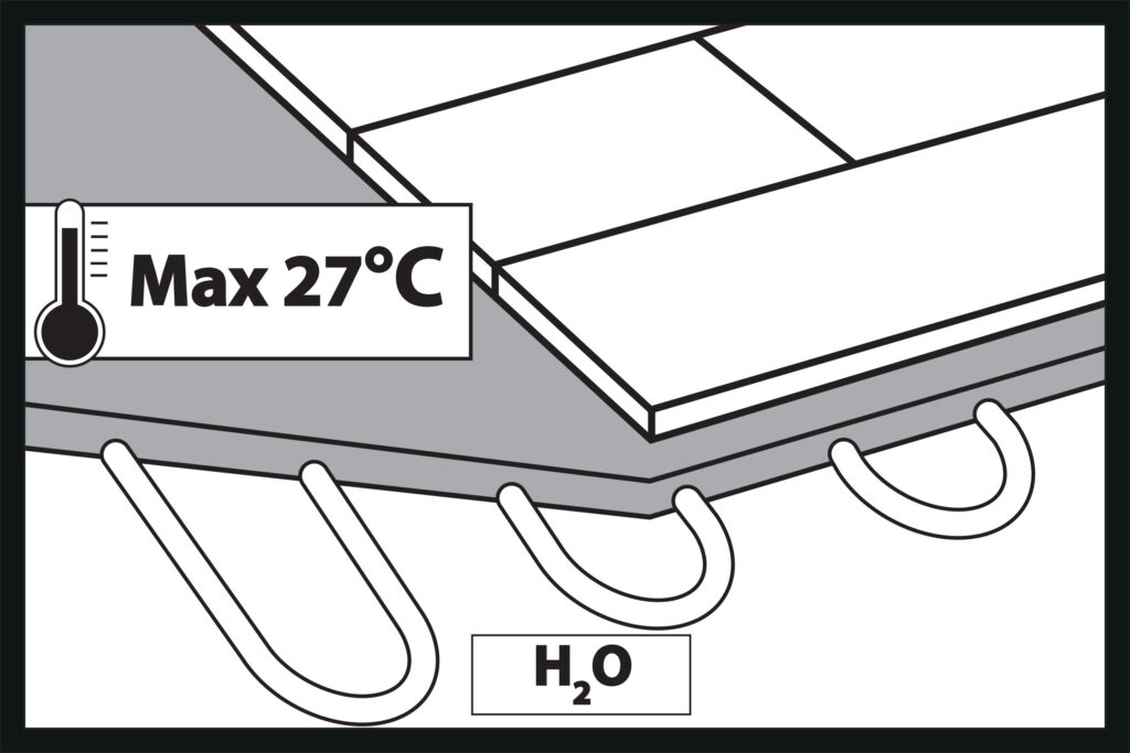 Sistemul de răcire sub pardoseală trebuie protejat împotriva temperaturii apei din instalație care scade sub +18°C.