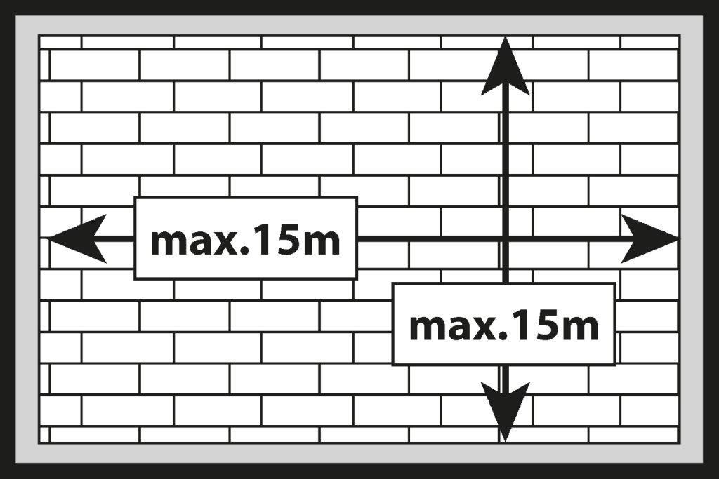 Dimensiunile maxime ale planului unei case/apartamente unde o pardoseală flotantă din SPC nu necesită rosturi de dilatare la uși sunt de 15m x 15m. Pentru dimensiuni de până la 15m x 15m, nu folosim rosturi de dilatare la uși sau pasaje către camerele adiacente. Folosim rosturi de dilatare în jurul pereților și al elementelor structurale, cum ar fi scările și coloanele.