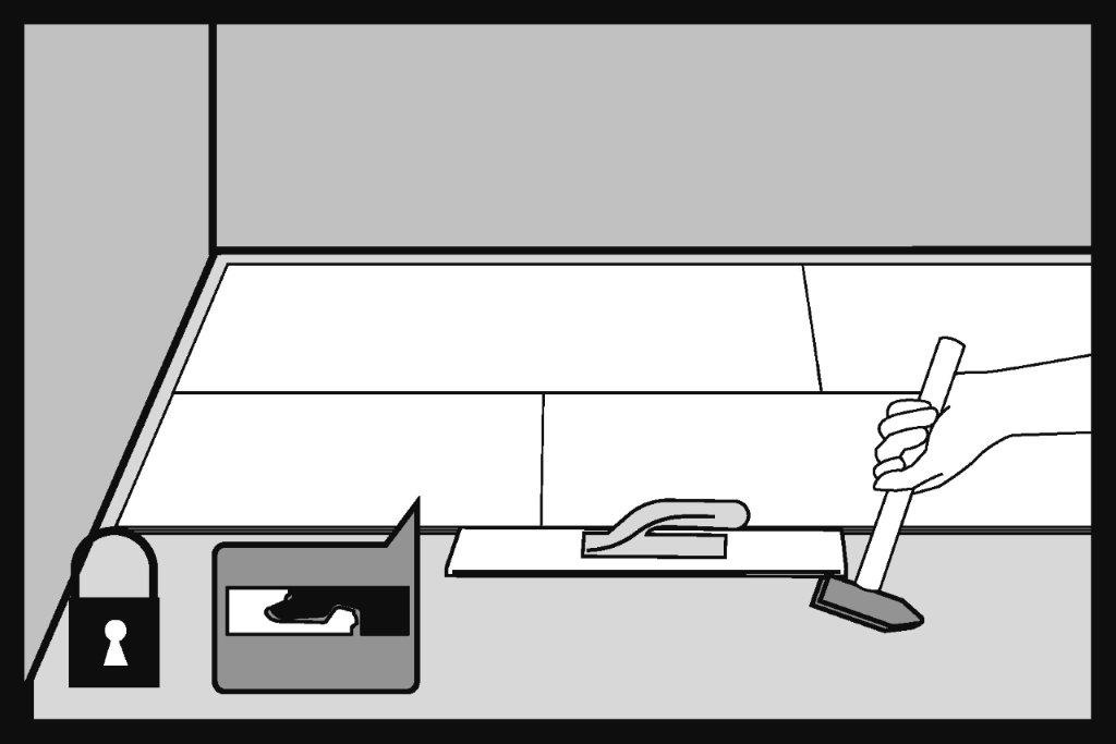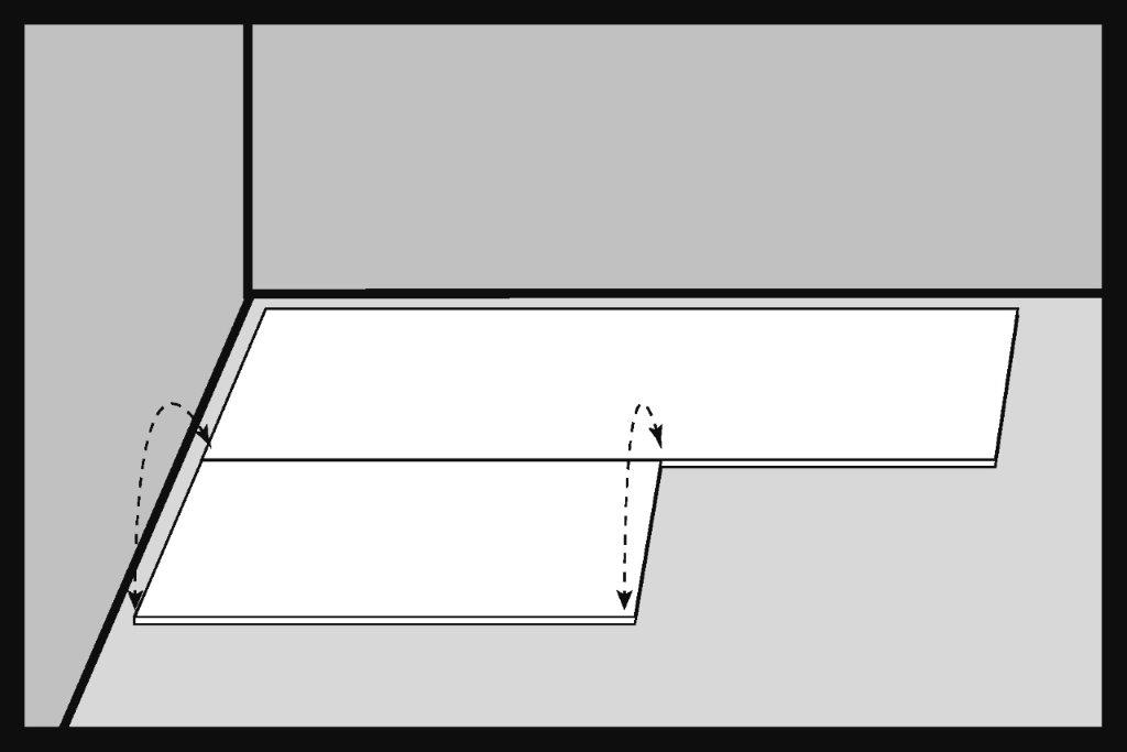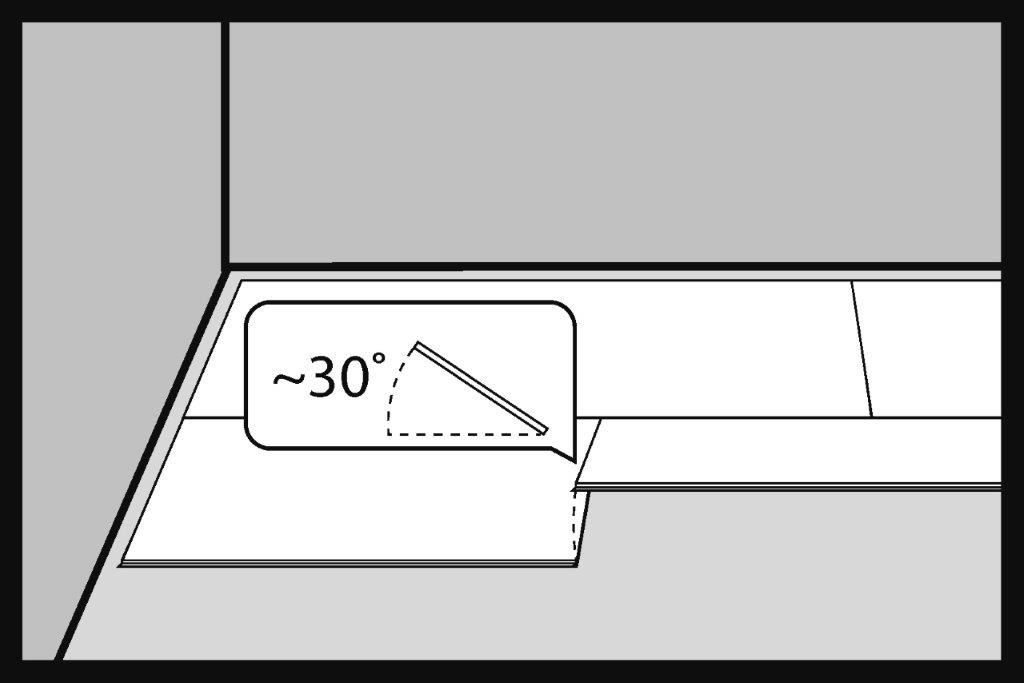 Al doilea panou din a doua fâșie de podea se introduce la un unghi de aproximativ 30° în încuietoarea panoului instalat în primul rând.