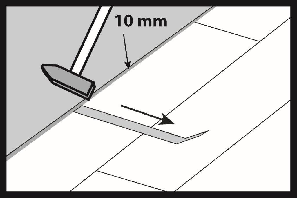 Bateți panoul pe partea lungă cu un ciocan de tapotare. La instalarea panourilor, bateți întotdeauna încuietorile de pe partea lungă.