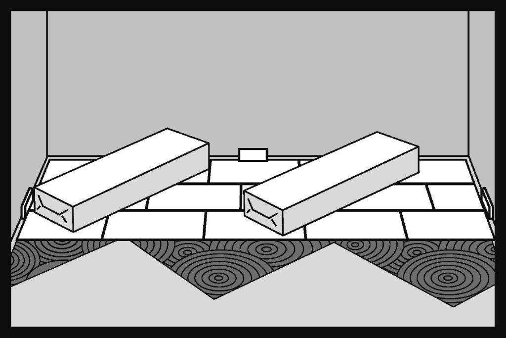 Începeți instalarea pe partea stângă a peretelui și continuați spre dreapta. Spațiul de dilatare trebuie să fie de cel puțin 10 mm. Penele de dilatare vor ajuta la menținerea acestei dimensiuni. Spațiul de dilatare trebuie creat de-a lungul perimetrului camerei și în jurul oricăror alte obstacole, cum ar fi coloane, scări, plăci ceramice etc.