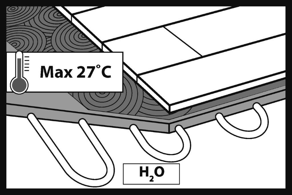 Pentru a preveni funcționarea inegală a miezului panoului, întreaga suprafață a podelei trebuie încălzită. Dacă există două sau mai multe bucle de încălzire într-o singură cameră, diferența de temperatură setată dintre bucle nu trebuie să depășească 5°C. Acest lucru asigură, de asemenea, un confort maxim (fără zone mai reci pe podea).