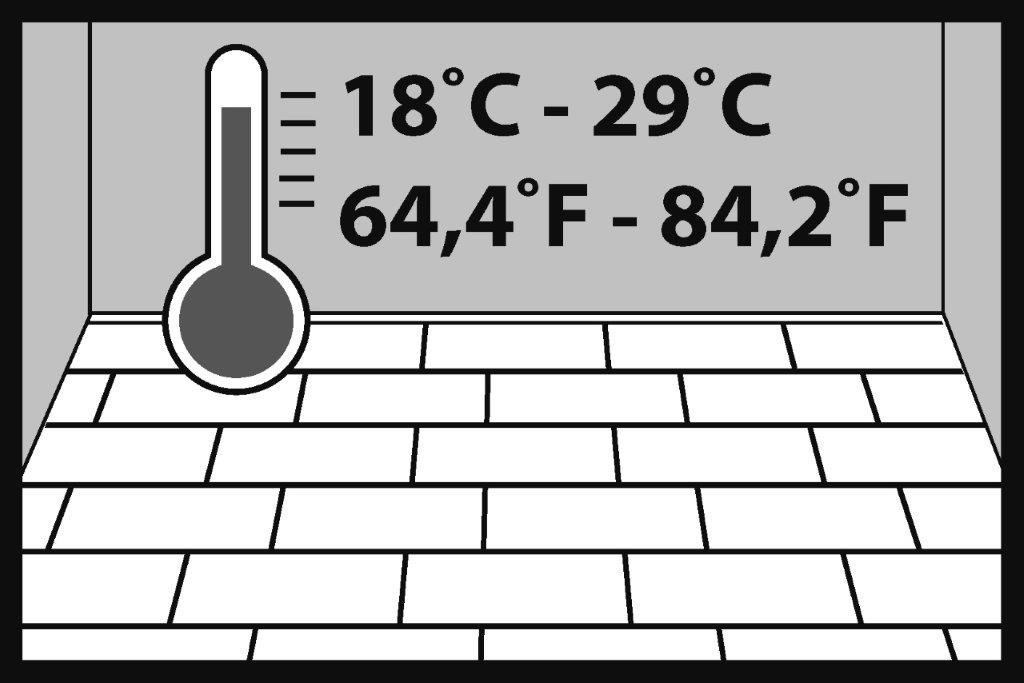 Când se folosește podeaua, temperatura camerei trebuie să fie între +18°C și +29°C.