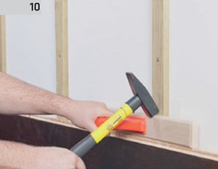 10. Următoarele elemente de parchet le imbinam Cu ajutorul blocului de batere – unul pe lângă altul.