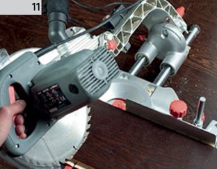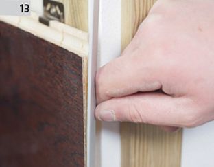 11. Colţul exterior este finisat de prin tăierea elementelor de parchet la un unghi de 45°. Pe locul de unire a muchiilor aplicăm adeziv.