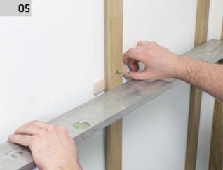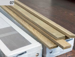 5. Şipcile trebuie să formeze un singur plan. Acest lucru îl verificăm cu ajutorul unei nivele care trebuie pusă pe lăţimea a minimum 3 şipci. În caz de nevoie nivelăm construcţia cu ajutorul de ex. a bucăţilor de placaj.