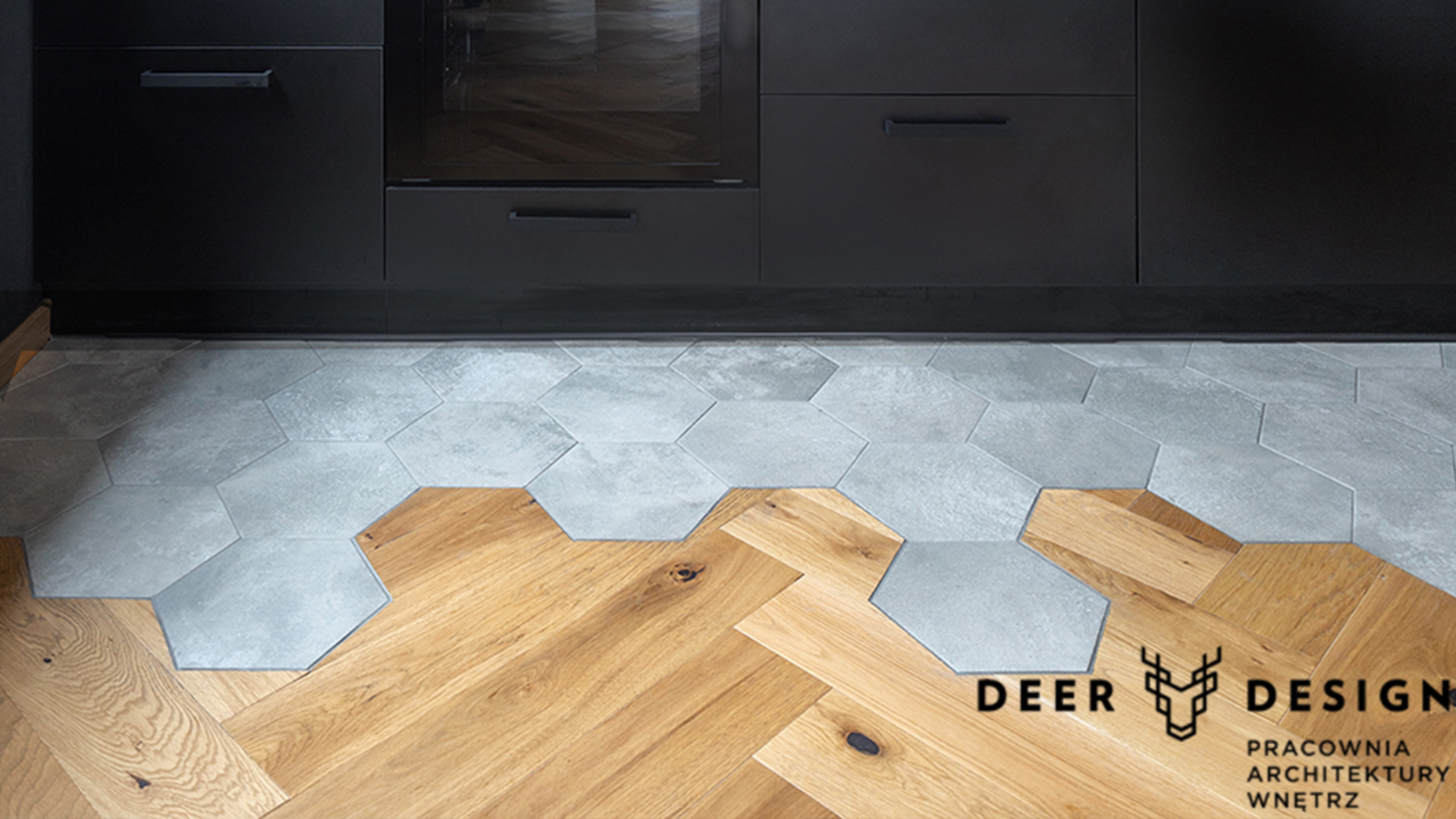 Modelul herringbone este o formă tradițională într-o interpretare modernă. Interioarele în care predomină pardoseala amenajată în model herringbone capătă un caracter unic, creând o atmosferă deosebită. Proiect: Deer Design